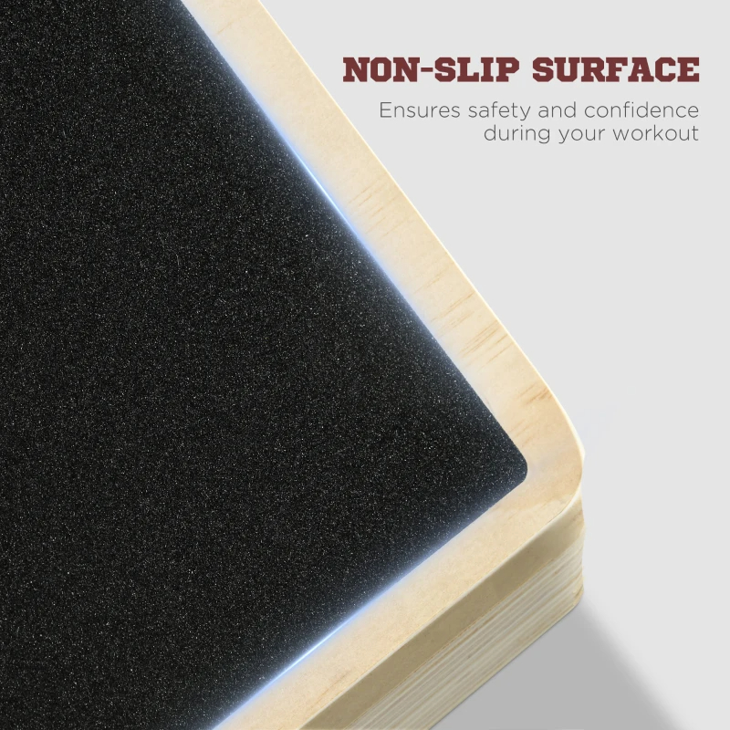 • - Non-Slip Stretcher: Don't worry about falling off at a higher slant; our stretcher is built so you can keep your foot on the board. Non-slip textured sandpaper on top reinforces you, so you can have the confidence to stretch your limits